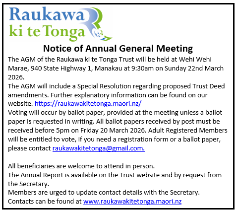 Raukawa ki Te Tonga Trust is the kaitiaki of the Raukawa ki te Tonga fisheries settlement assets.